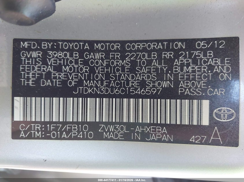 • JTDKN3DU6C1546597
