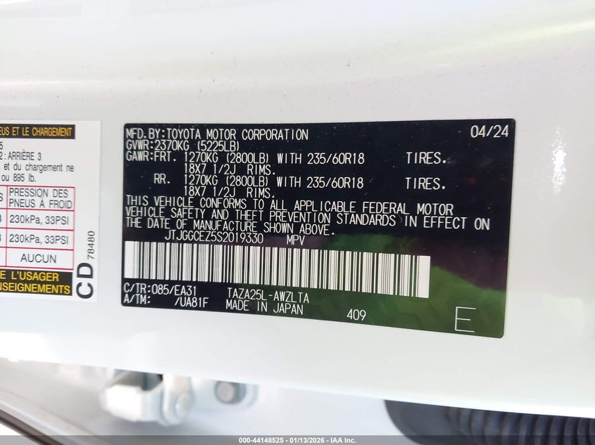 • JTJGGCEZ5S2019330