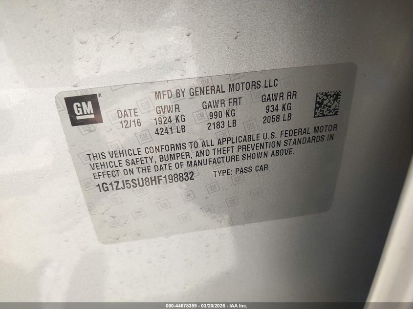 • 1G1ZJ5SU8HF198832