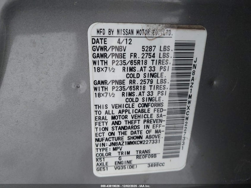 • JN8AZ1MWXCW227331