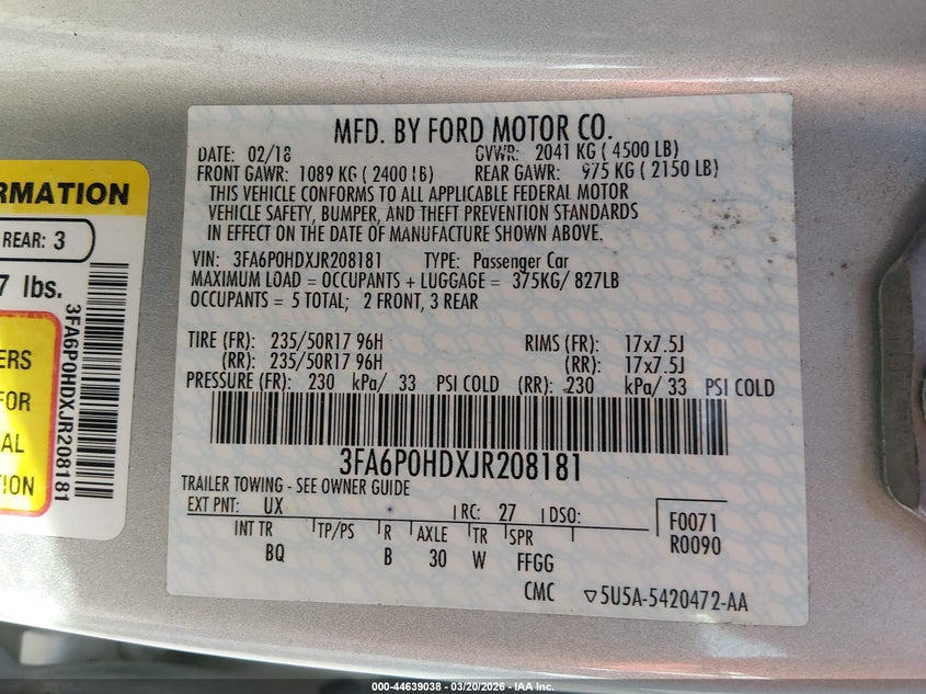• 3FA6P0HDXJR208181