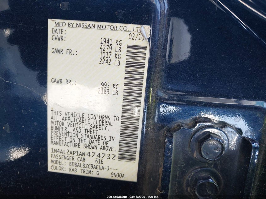 2010 NISSAN ALTIMA 2.5 S for Sale in Florence, TX
