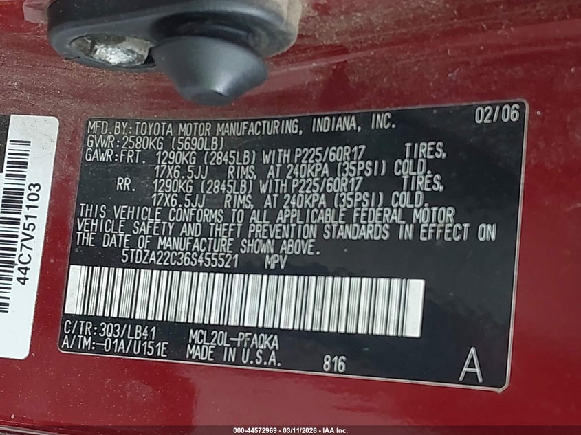 • 5TDZA22C36S455521