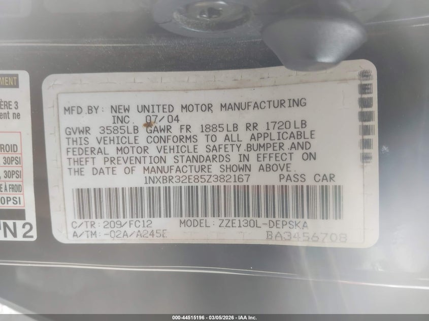 • 1NXBR32E85Z382167