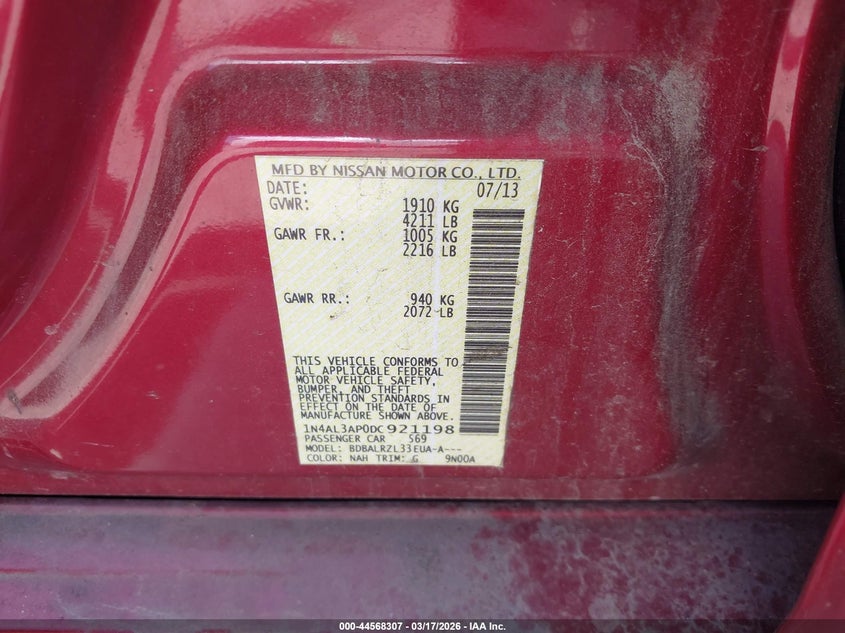 2013 NISSAN ALTIMA 2.5 S for Sale in Longview, TX
