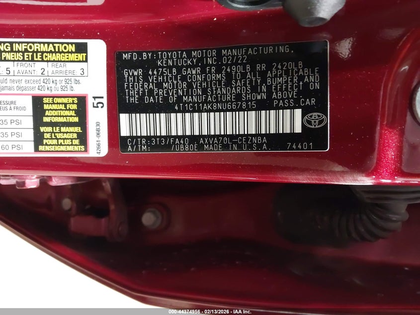 • 4T1C11AK8NU667815