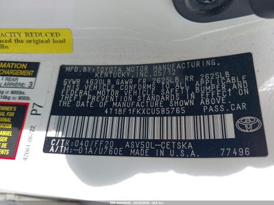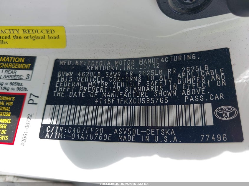 • 4T1BF1FKXCU585765