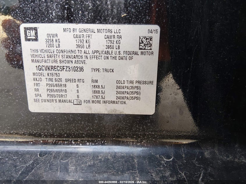 • 1GCVKREC5FZ310236