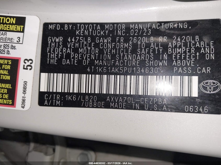 • 4T1K61AK5PU134630