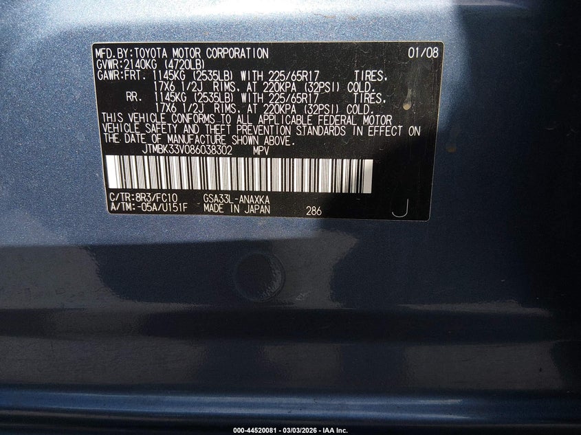 • JTMBK33V086038302
