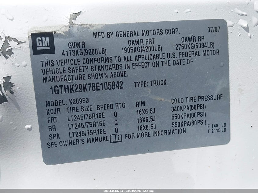 • 1GTHK29K78E105842