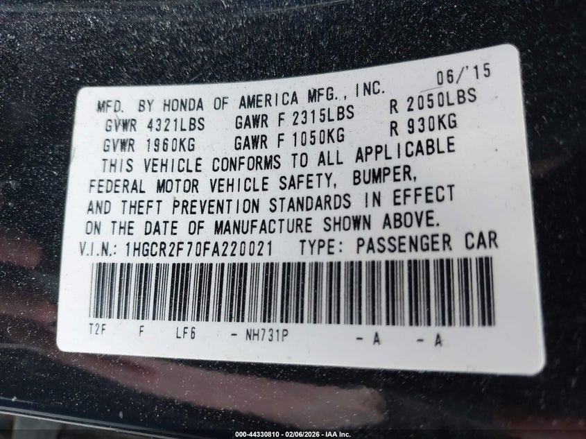 • 1HGCR2F70FA220021