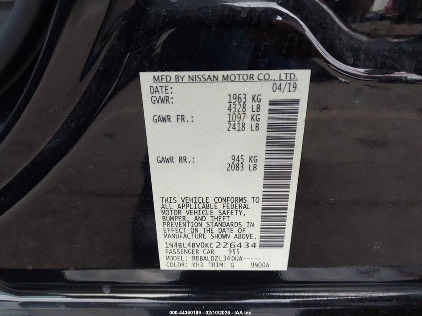 • 1N4BL4BV0KC226434