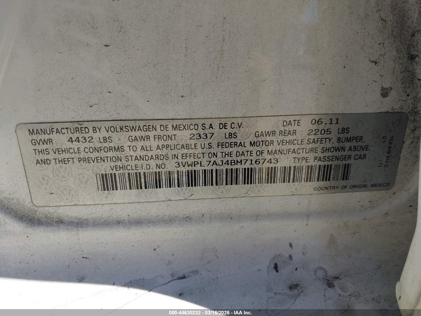 • 3VWPL7AJ4BM716743