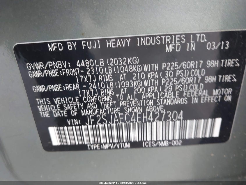 • JF2SJAEC4EH427304