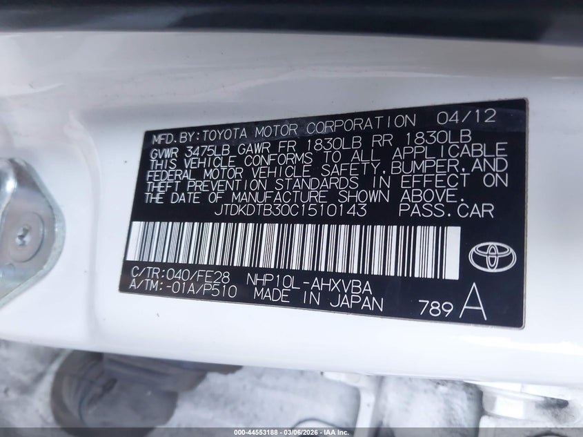 • JTDKDTB30C1510143