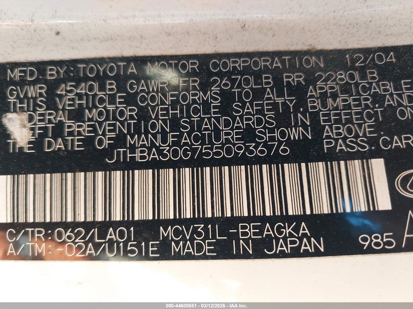 • JTHBA30G755093676