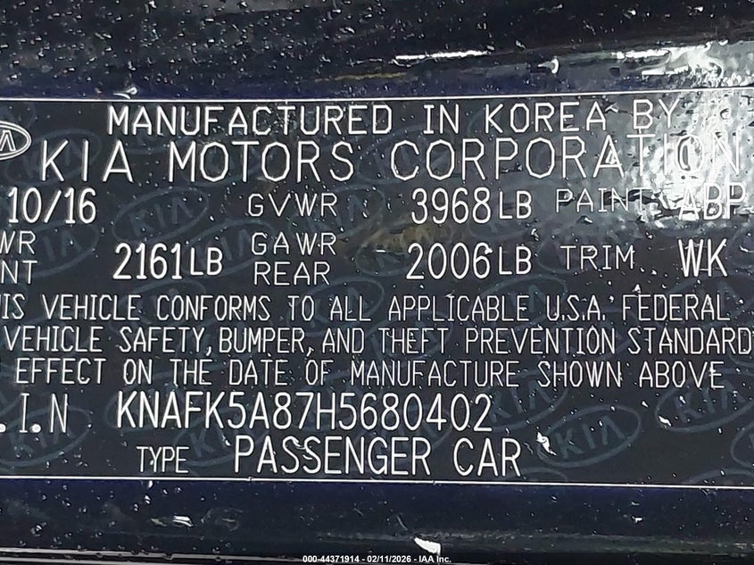 • KNAFK5A87H5680402