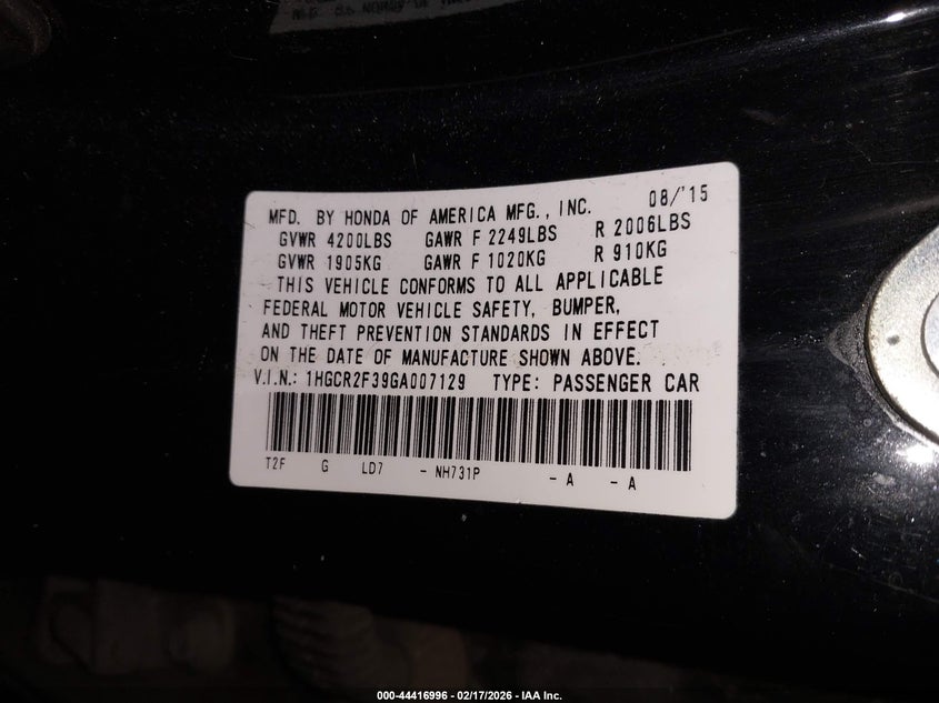 • 1HGCR2F39GA007129