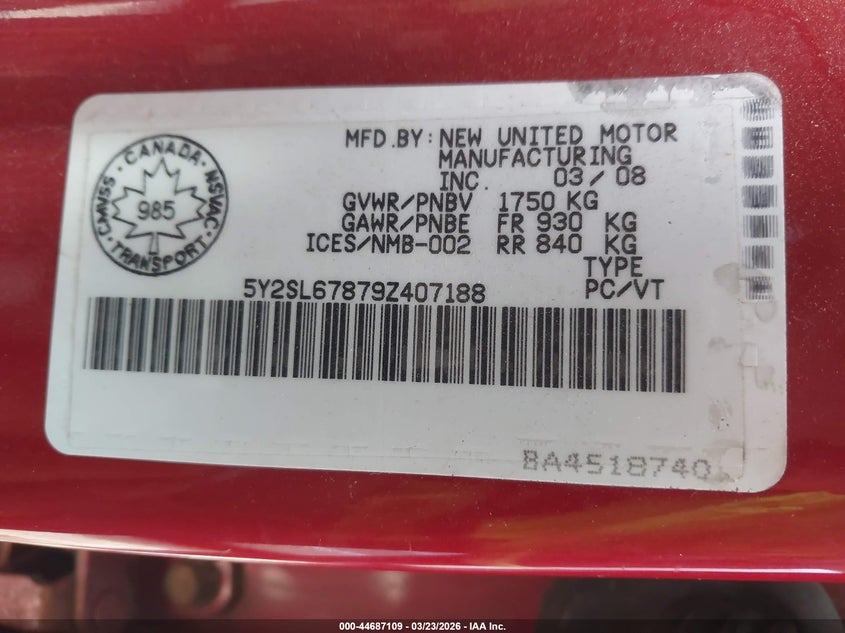 • 5Y2SL67879Z407188