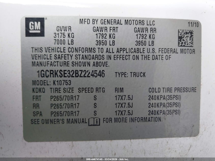 • 1GCRKSE32BZ224546