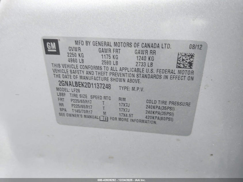 2013 CHEVROLET EQUINOX LS for Sale in Port Murray, NJ