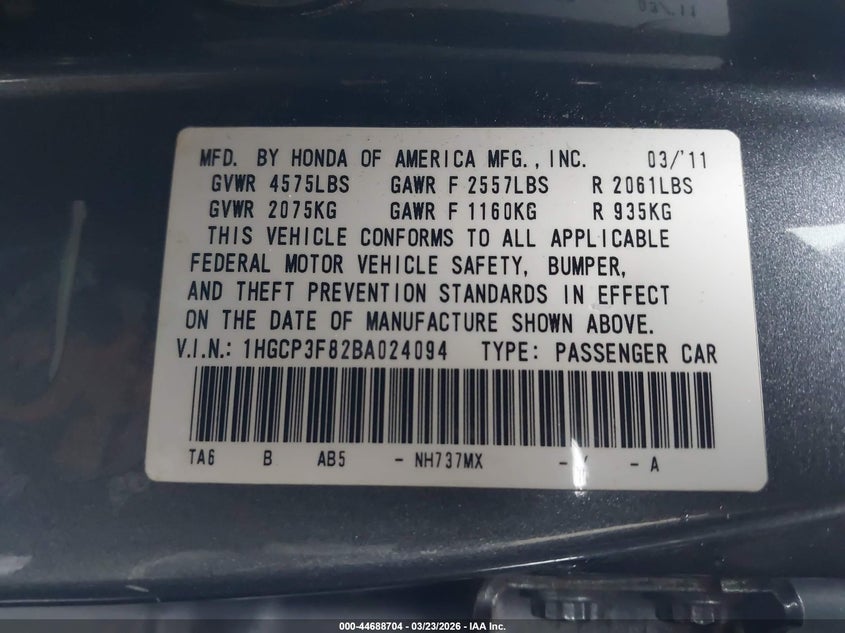 • 1HGCP3F82BA024094