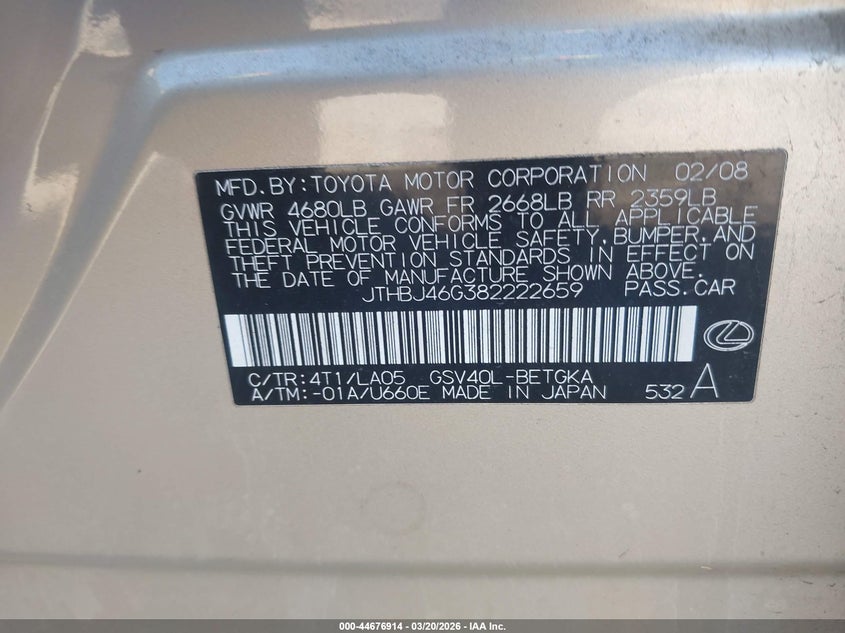 • JTHBJ46G382222659
