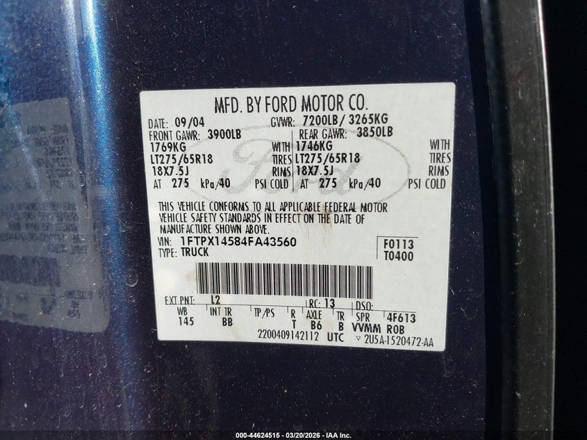 • 1FTPX14584FA43560
