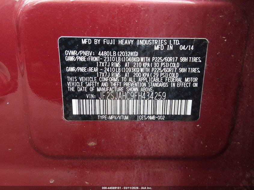 • JF2SJAHC9FH434259