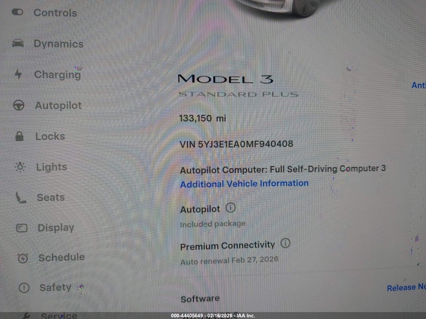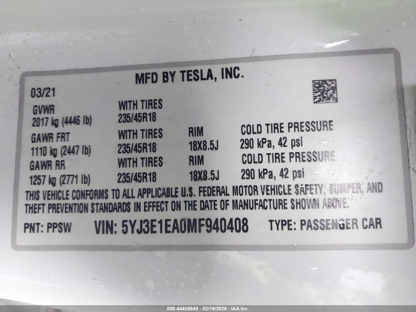 2021 TESLA MODEL 3 STANDARD RANGE PLUS REAR-WHEEL DRIVE for Sale in Electric Vehicle Auctions, None