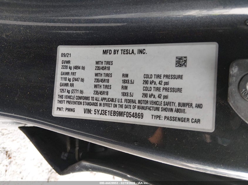 2021 TESLA MODEL 3 LONG RANGE DUAL MOTOR ALL-WHEEL DRIVE for Sale in Electric Vehicle Auctions, None