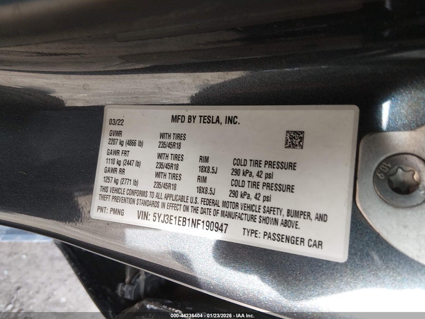 • 5YJ3E1EB1NF190947