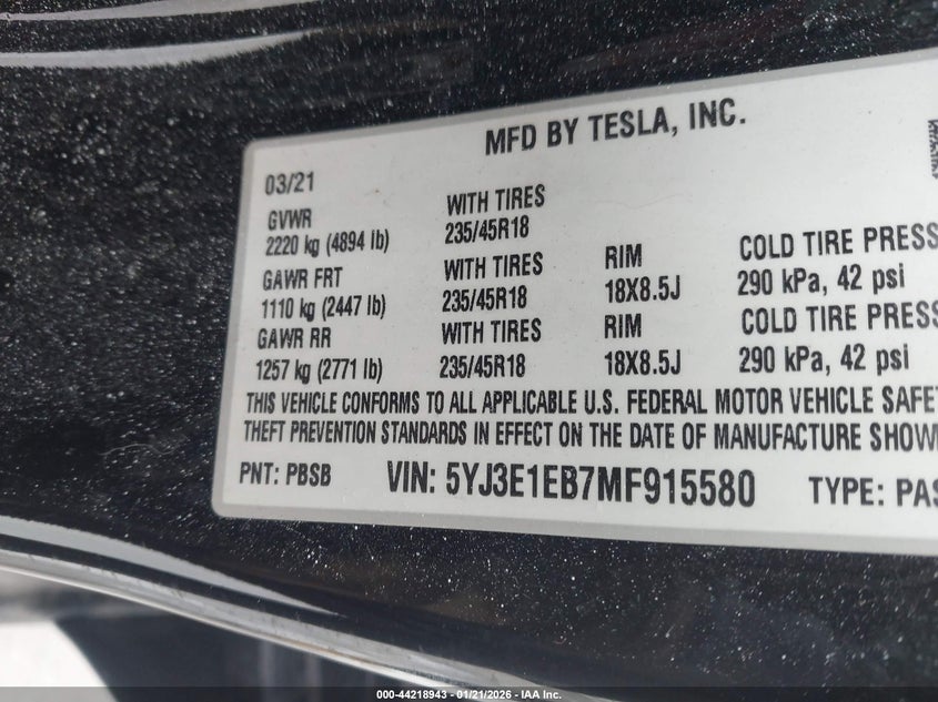 • 5YJ3E1EB7MF915580