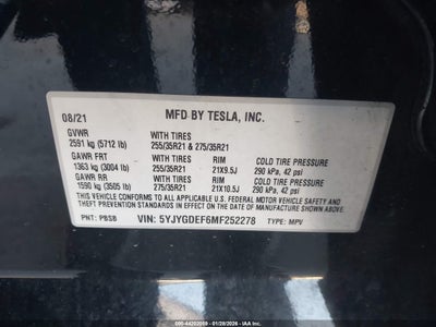 2021 TESLA MODEL Y PERFORMANCE DUAL MOTOR ALL-WHEEL DRIVE for Sale in Electric Vehicle Auctions, None