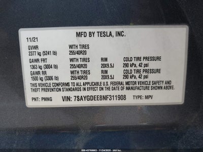 2022 TESLA MODEL Y LONG RANGE DUAL MOTOR ALL-WHEEL DRIVE for Sale in Electric Vehicle Auctions, None