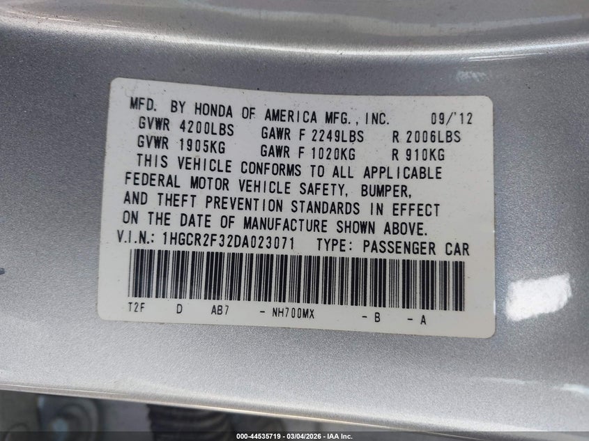 • 1HGCR2F32DA023071