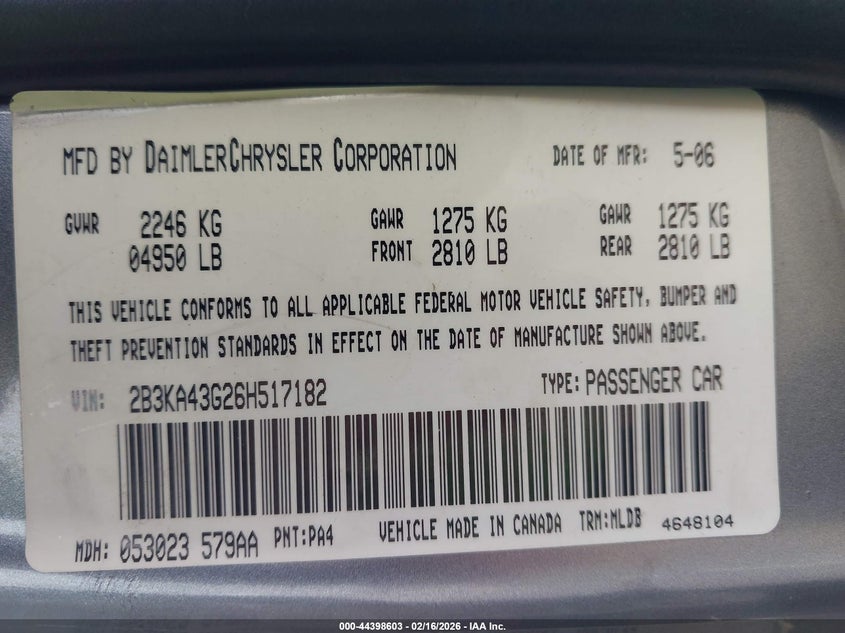 • 2B3KA43G26H517182
