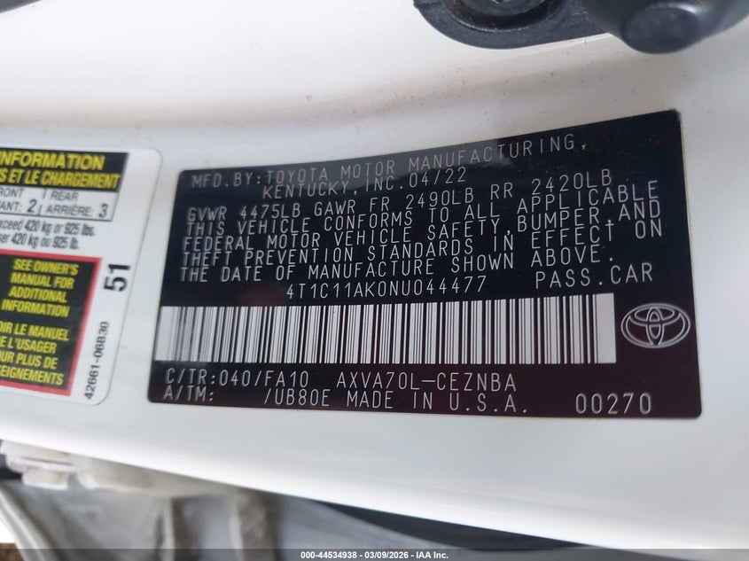 • 4T1C11AK0NU044477