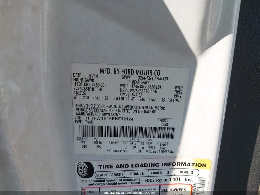 • 1FTFW1ET6EKF32124