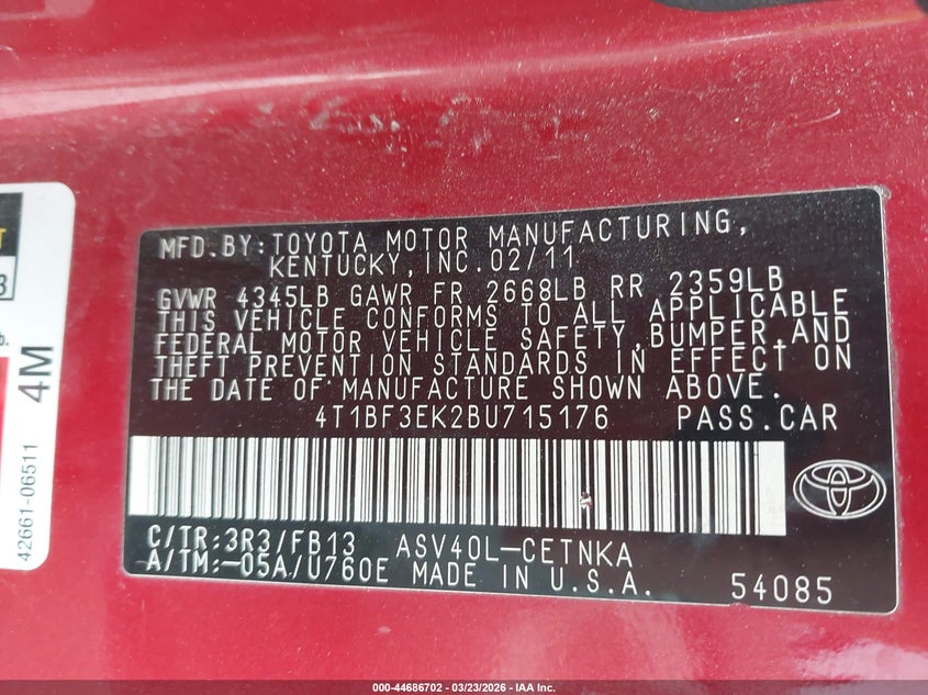 • 4T1BF3EK2BU715176