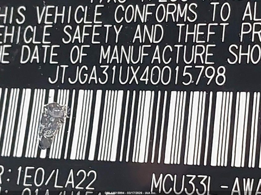 • JTJGA31UX40015798