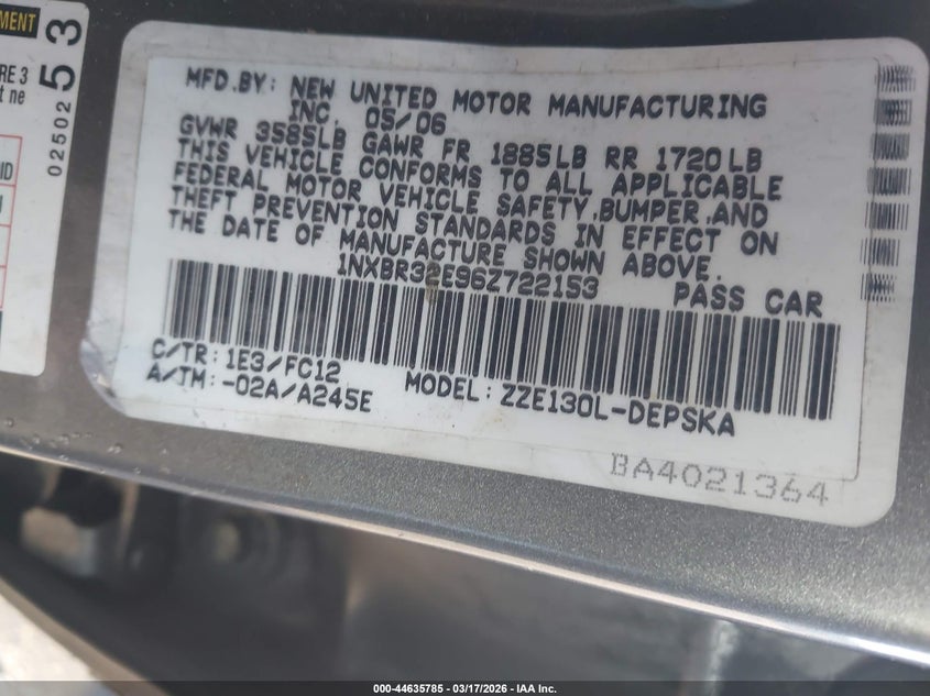 • 1NXBR32E96Z722153