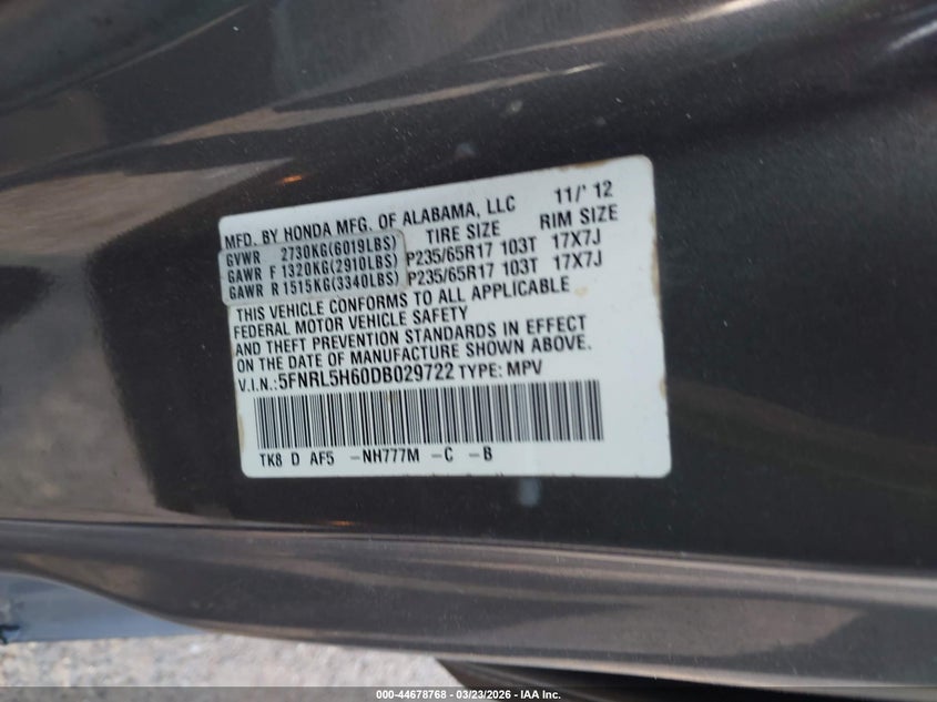 • 5FNRL5H60DB029722