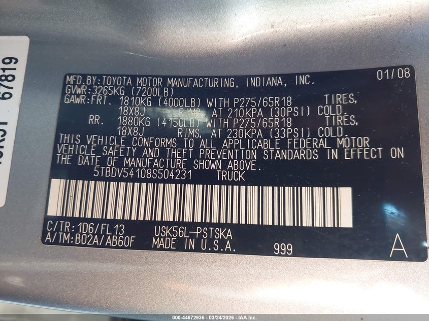 • 5TBDV54108S504231