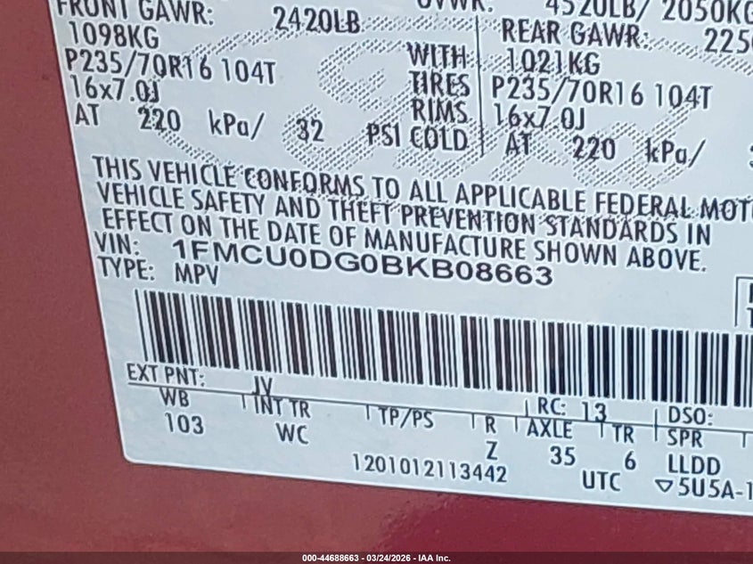 • 1FMCU0DG0BKB08663