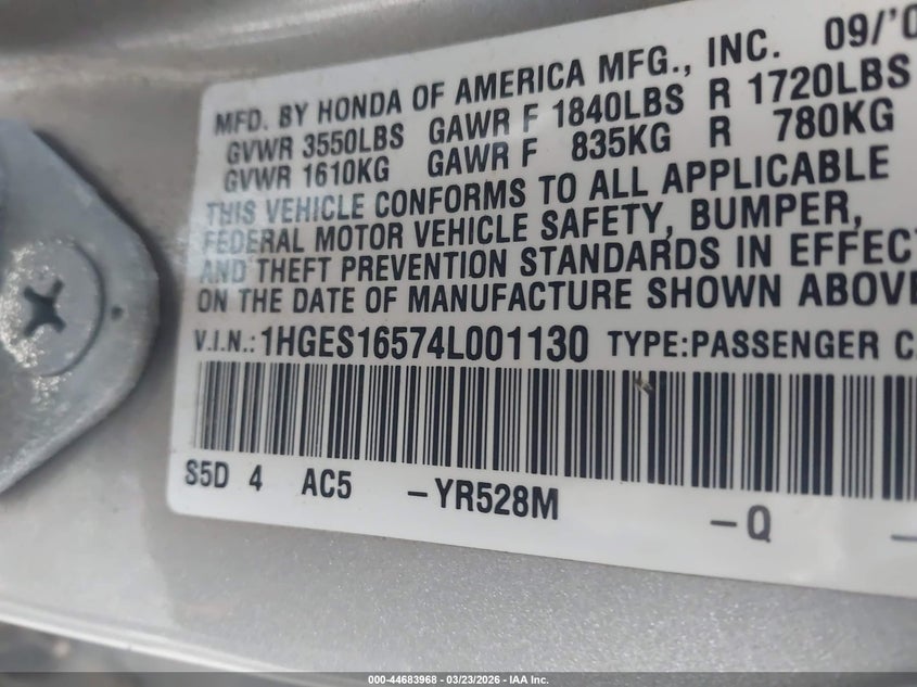 • 1HGES16574L001130
