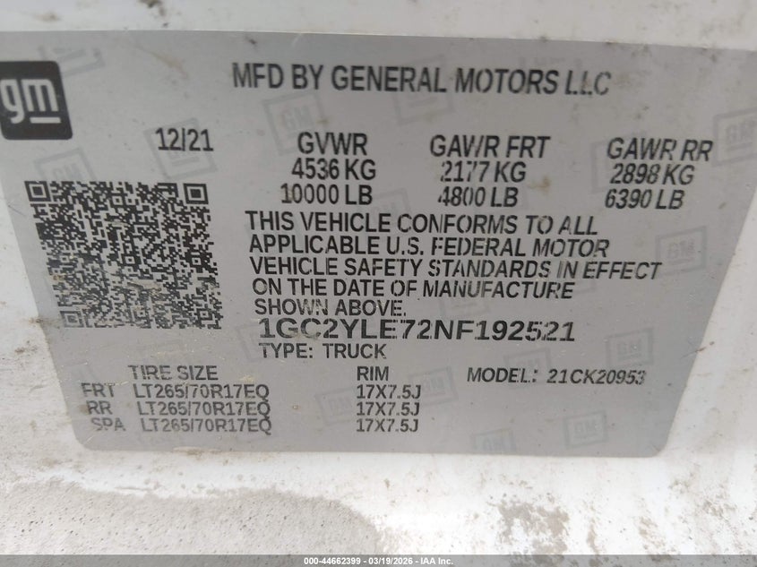 • 1GC2YLE72NF192521