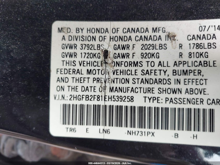• 2HGFB2F81EH539258