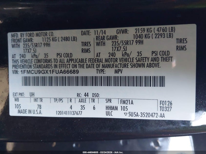 • 1FMCU9GX1FUA66689